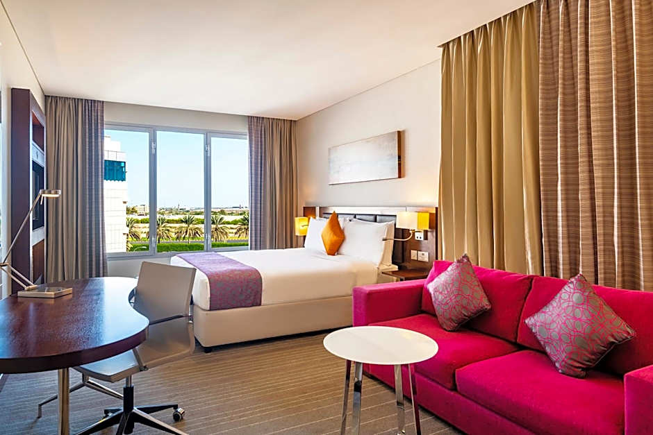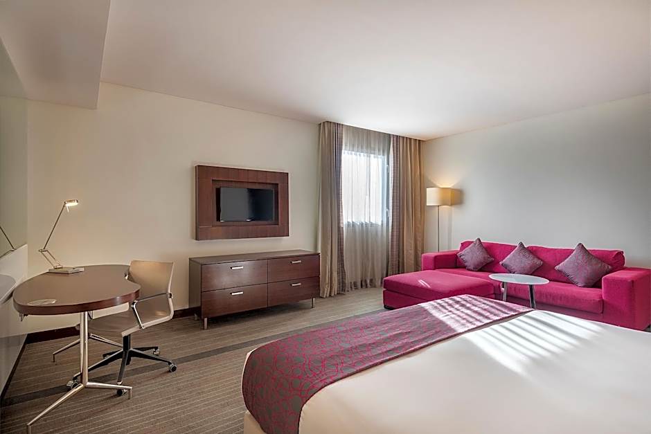 Spread out and relax in this spacious suite of 48 sqm. From the sofa in the separate living area you can browse the web using complimentary high speed WiFi or enjoy sports and movies on the 32 inch LCD TV. Freshen up in the walk in, after a hot day in Muscat.