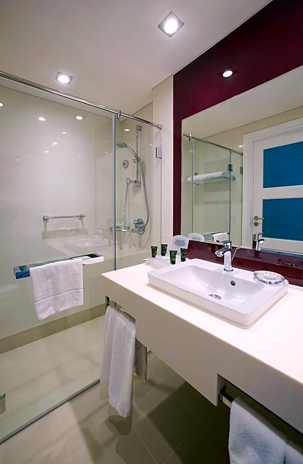 This stylish room of 27 sqm overlooks the pool and offers comfy accommodations for 2 adults and 1 child. Free WiFi means you can browse the web at your leisure or prepare for a meeting at the ergonomic work space. Then unwind in the armchair while enjoying a movie on the 32 inch LCD TV.